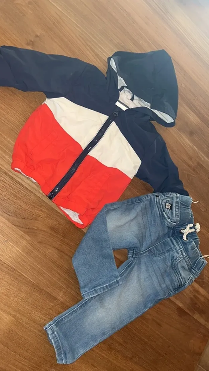 Gilet zip à capuche / jeans c&a 9/12 mois