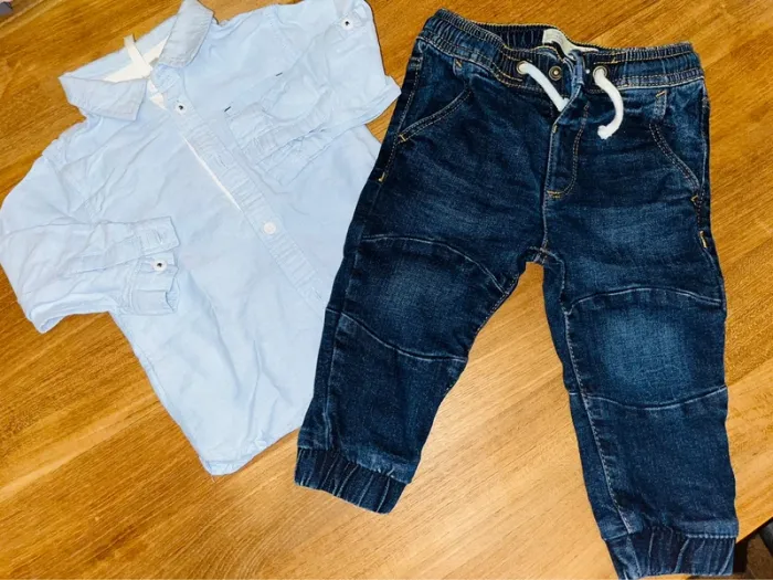 Chemise orchestra bleu clair 12 mois/jeans Zara 9/12mois - photo numéro 1