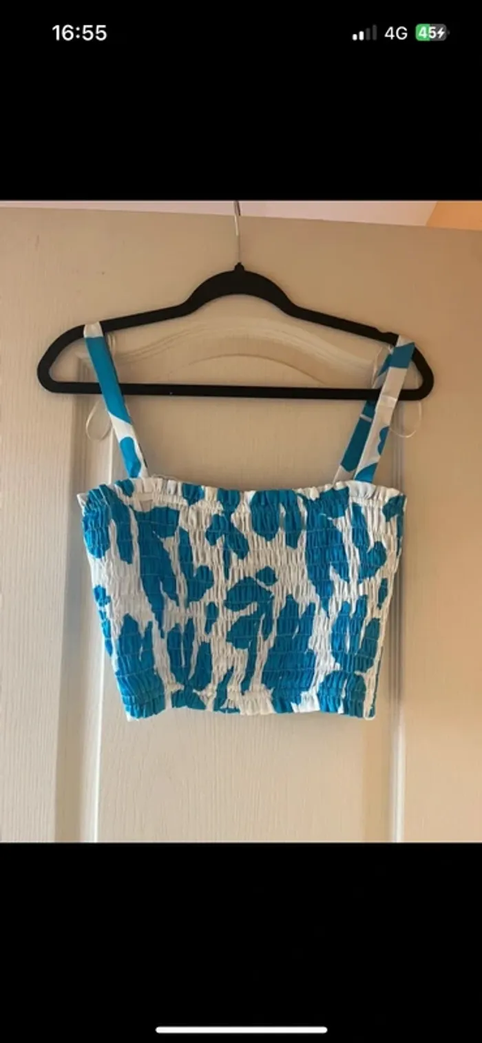 top blanc et bleu stradivarius - photo numéro 1
