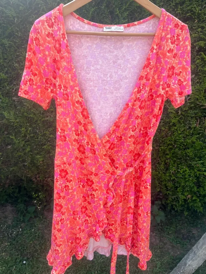 robe portefeuille fleurie pull and bear - photo numéro 1
