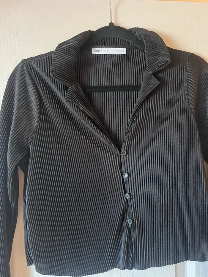 chemisier manches longues regular fit noir plissée et satinée bershka - photo numéro 1