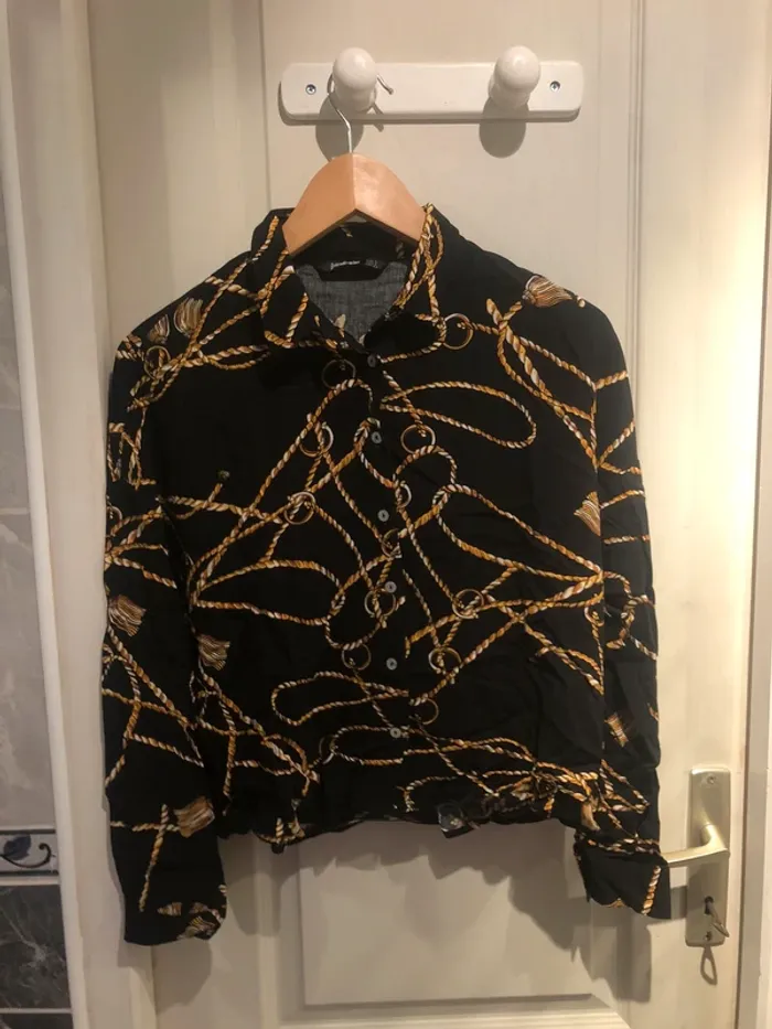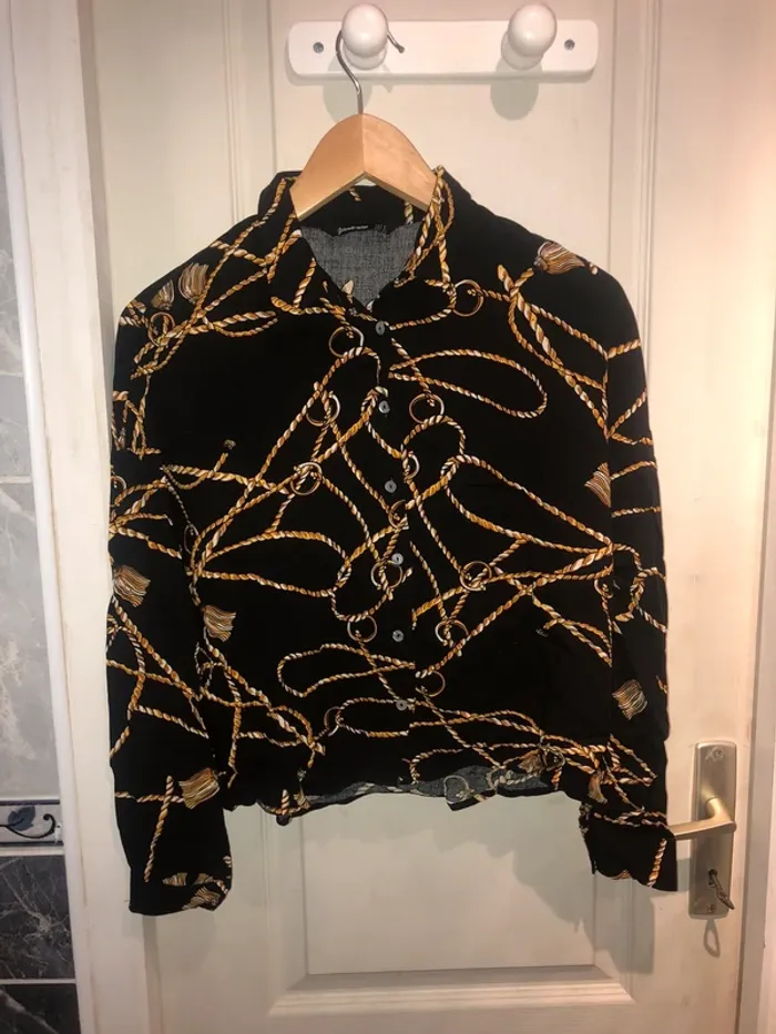 chemise noir avec imprimé chaines or - photo numéro 1