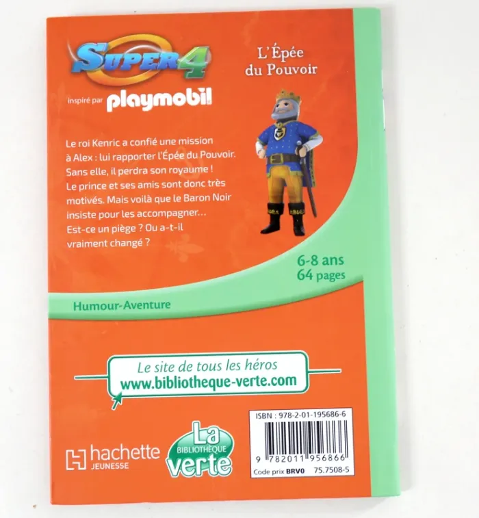 Livre de la série "Super 4" inspiré par Playmobil intitulé "L'épée du pouvoir" (tome 9), collection Bibliothèque verte, édition Hachette Jeunesse. Livre en très bon état, de 64 pages pour enfant de 6 à 8 ans. Prix ferme, envoi rapide et soigné. N'hésitez pas à composer un lot pour rentabiliser les frais de port