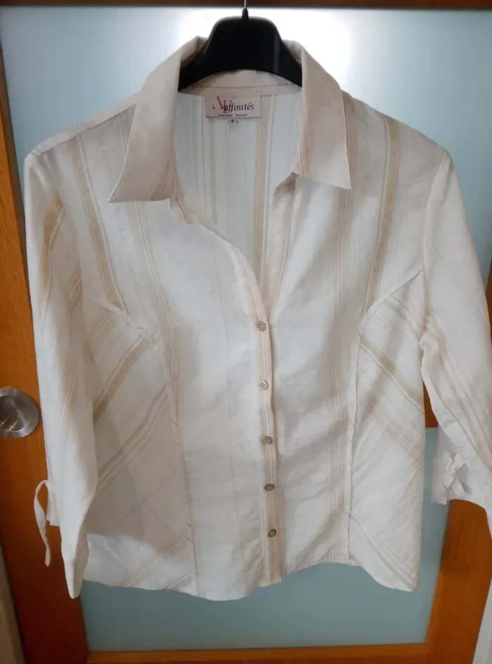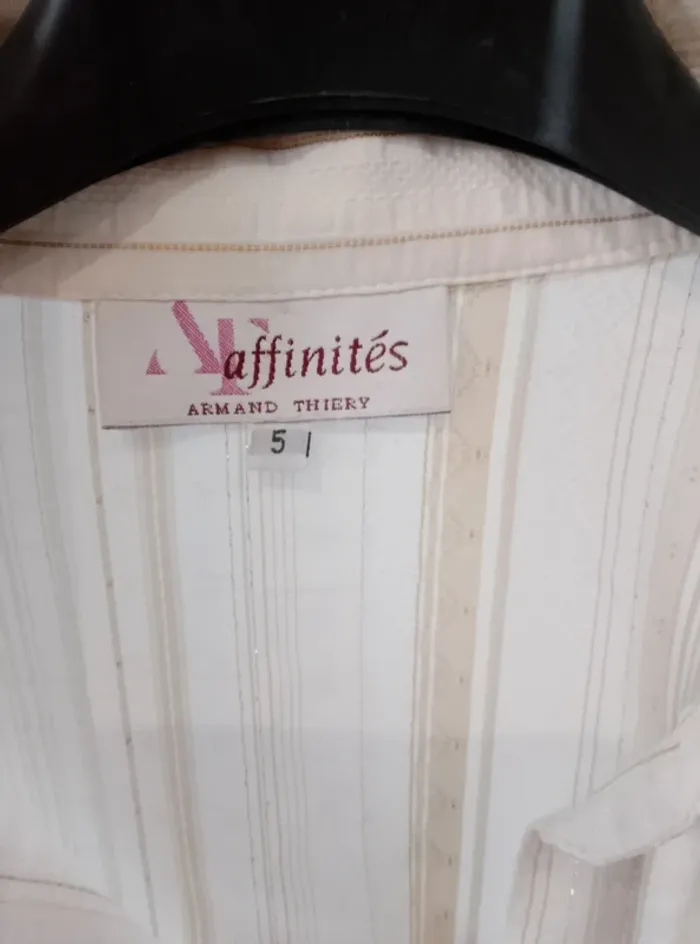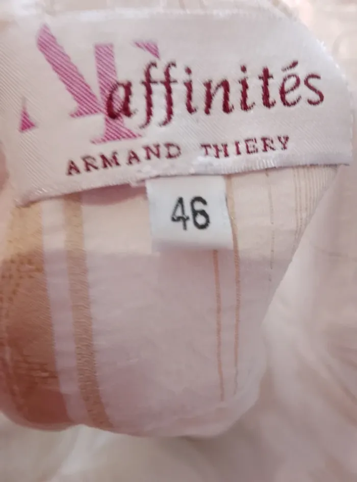 #vêtementsfemme46lucie59166 Porté une journée pour un mariage Armand Thiery * Haut chemisier, chemise - Taille 5 Épaule à épaule 42 cm Largeur aisselles 56 cm * Jupe doublée - Taille 46 Largeur 46 cm Longueur 63 cm