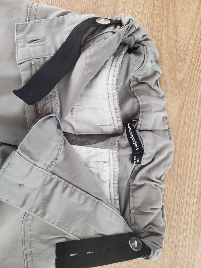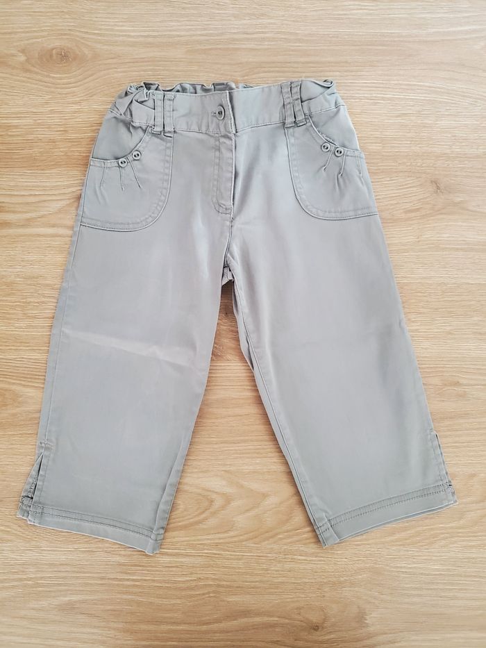 Pantacourt pour fille, taille 8 ans, gris clair. Taille réglable par un élastique. En bon état. Marque : Tout compte fait.