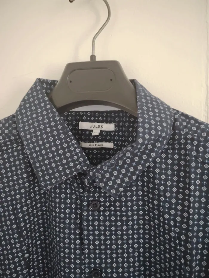 #meganeayronhommexl Chemise manche longue bleu à motif blanc marque Jules modèle slim #louis taille XL