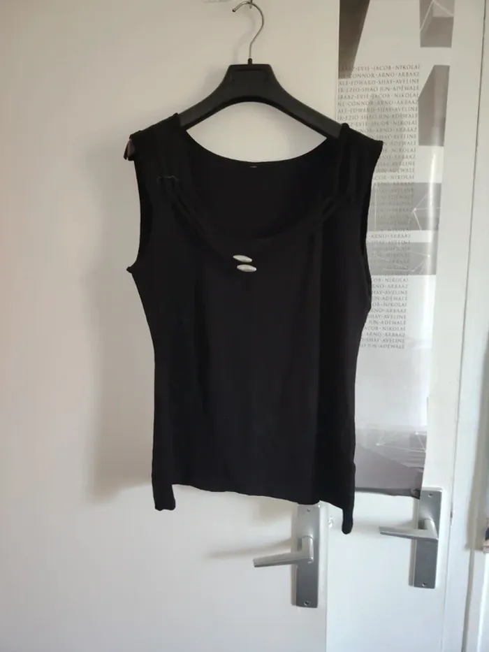 #meganeayronquarantedeux Débardeur noir sans marque taille 42 Étiquette de taille coupe Aisselle à aisselle 53cm