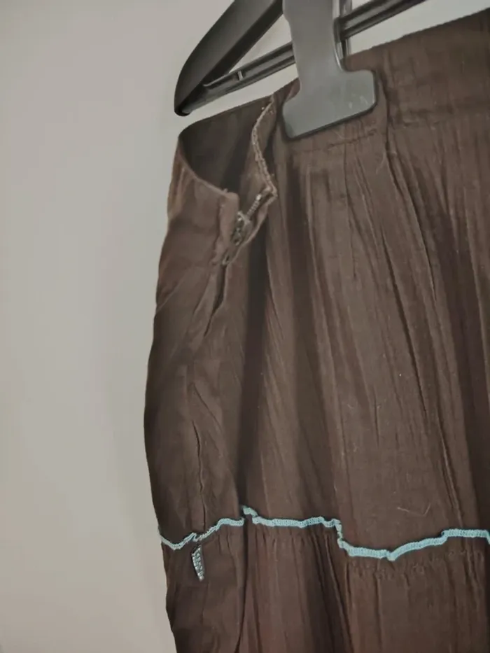 #meganeayronquarantesix Jupe marron et turquoise marque terre de marins taille 46 Taille 46cm Longueur 74cm