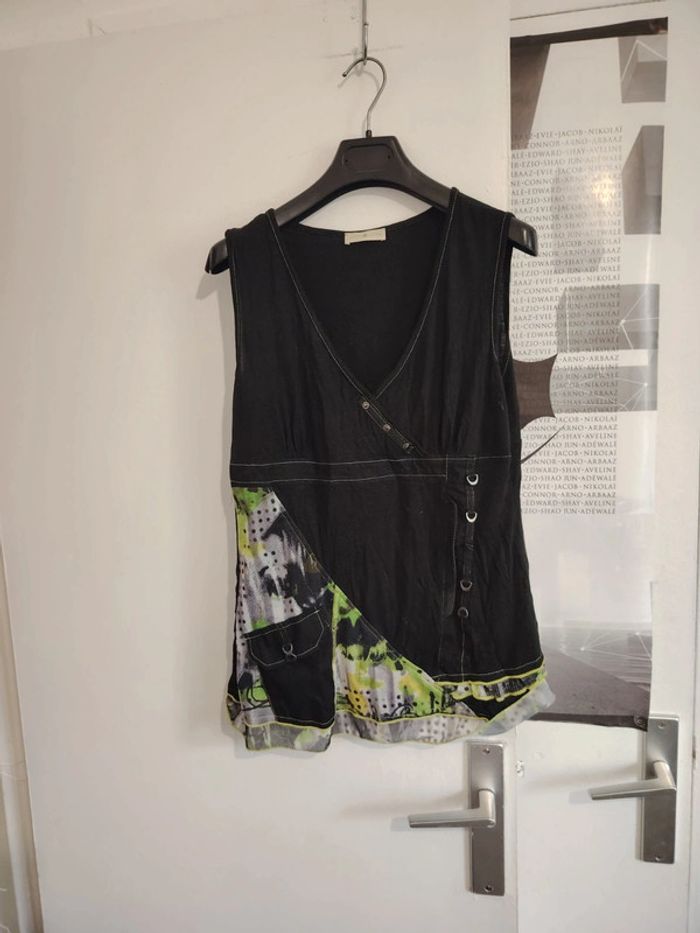 #meganeayronquarantedeux Débardeur noir et vert marque cache cache taille 4