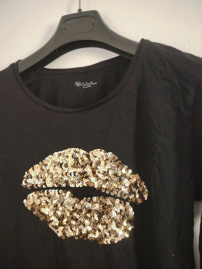 #meganeayronquarantedeux Blouse manche longue noir et doré à sequin marque u collection taille 42/44