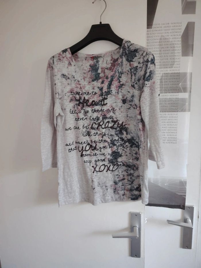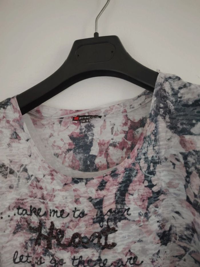 #meganeayronquarante Blouse manche 3/4 gris et rose marque street one taille 40