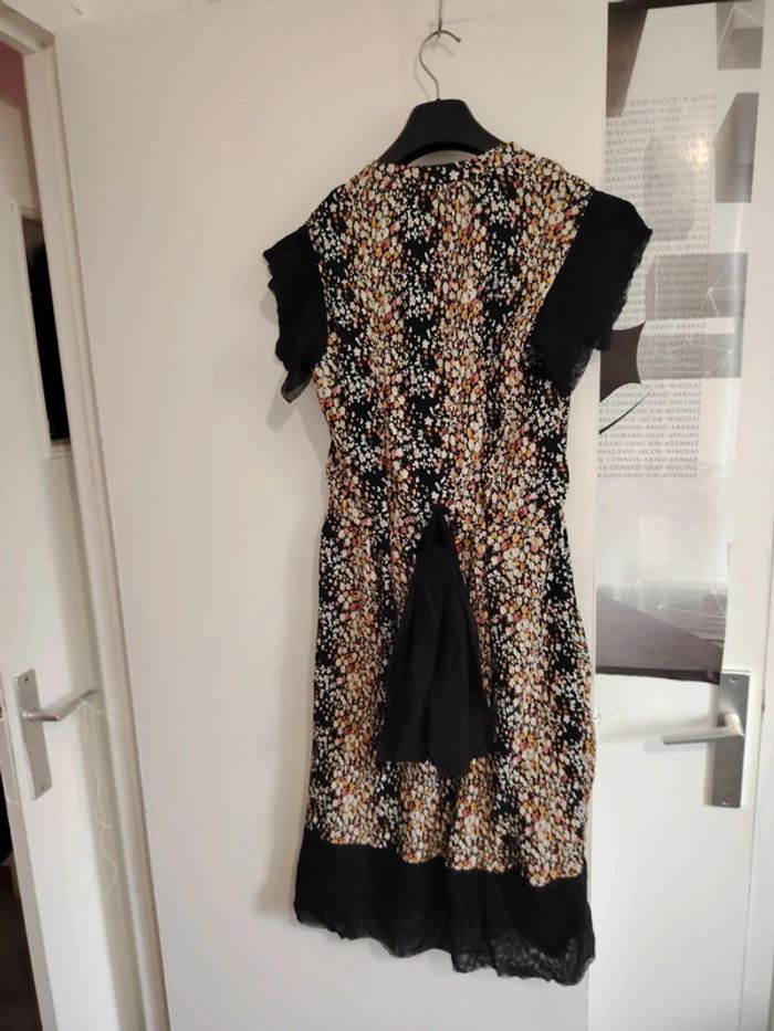 #meganeayrontrentesix Robe noir à fleur sans marque taille 36 Étiquette de taille coupe Aisselle à aisselle 42cm