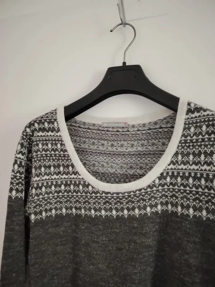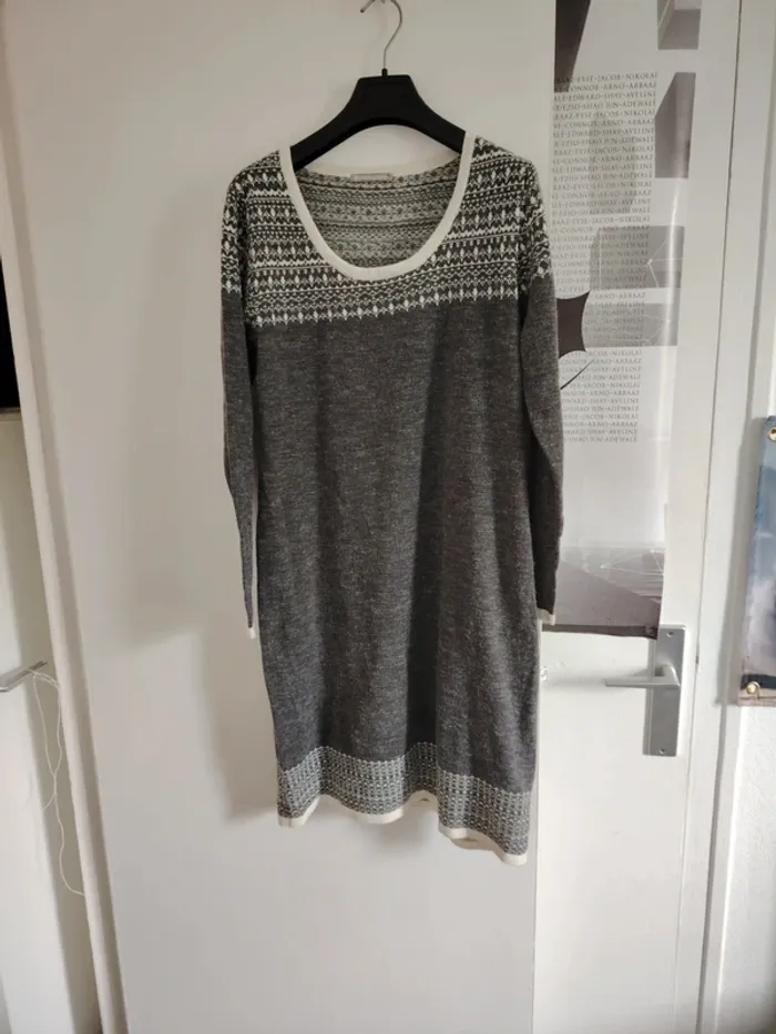#meganeayrontrentehuit Robe gris et crème marque blanche porte taille 38/40