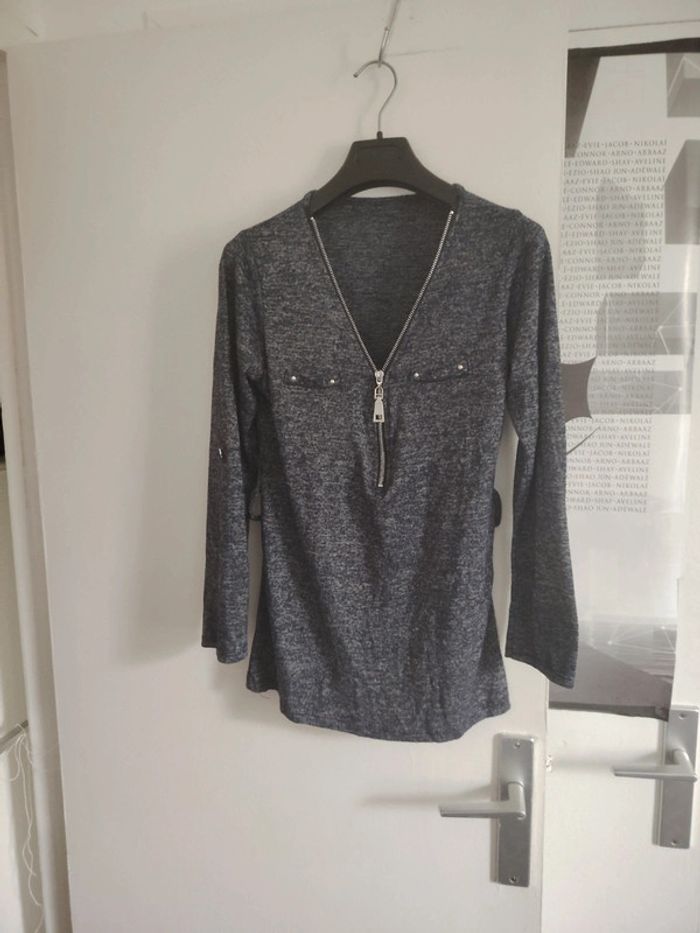 #meganeayrontrentesix Blouse marine chine sans marque taille 36 Étiquette de taille coupe Aisselle à aisselle 44cm