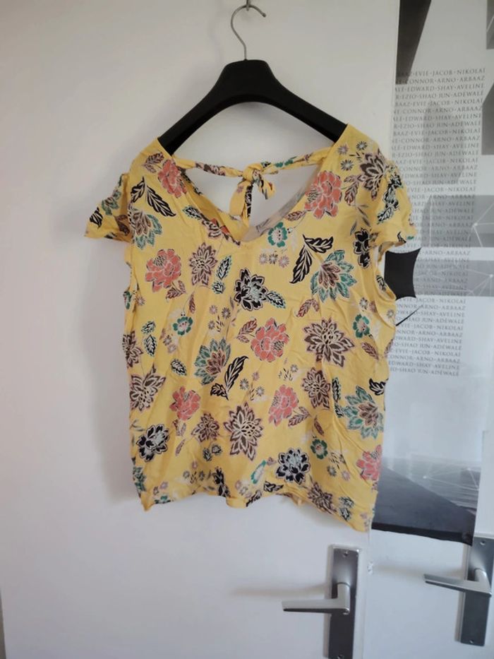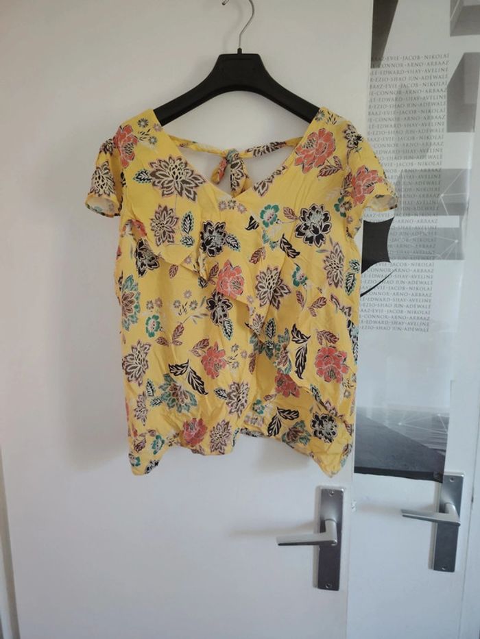#meganeayronquarante Blouse manche courte jaune a fleur sans marque taille 40