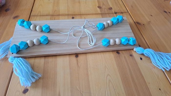 Étagère chambre enfant. Perles bleues et beiges.