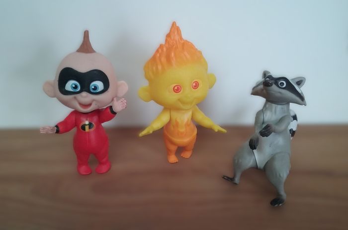 Héros des indestructibles 2, bébé Jack Jack, Jack Jack en feu et le méchant raton laveur ! Les figurines mesurent entre 10 et 12,5 cm avec plusieurs points d'articulation. Quelques petites marques noires sur les figurines mais ces dernières restent néanmoins en très bon état général!