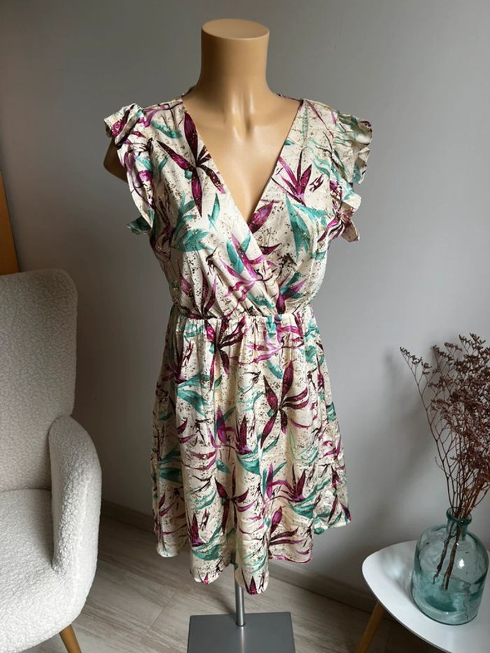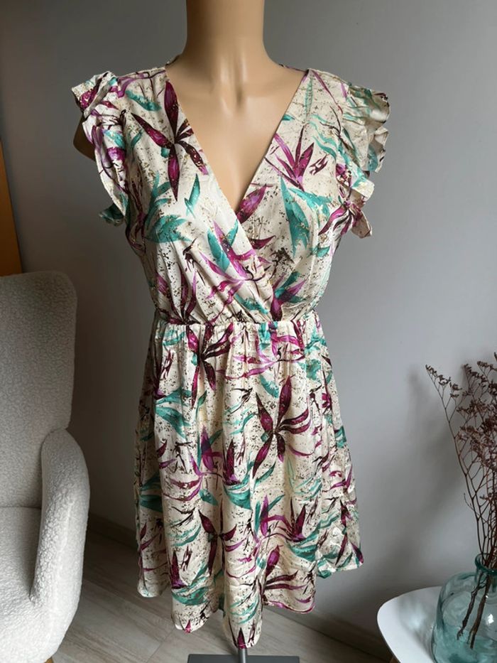 Superbe robe beige à fleurs roses et vertes - photo numéro 1