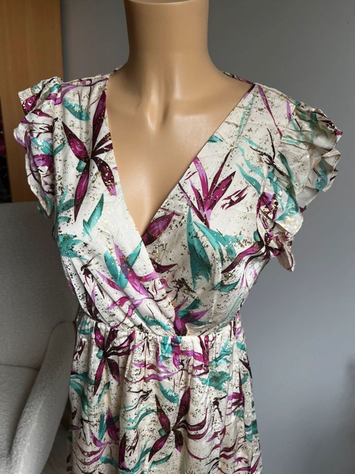 Superbe robe beige à fleurs roses et vertes - photo numéro 3