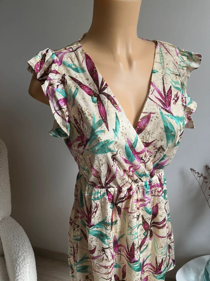 Superbe robe beige à fleurs roses et vertes - photo numéro 2