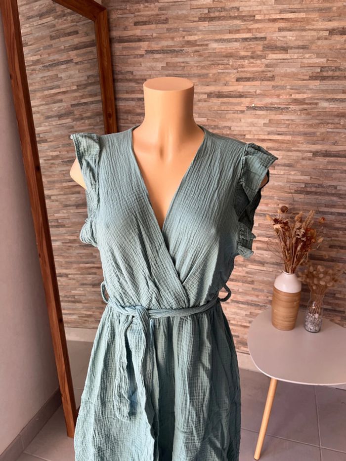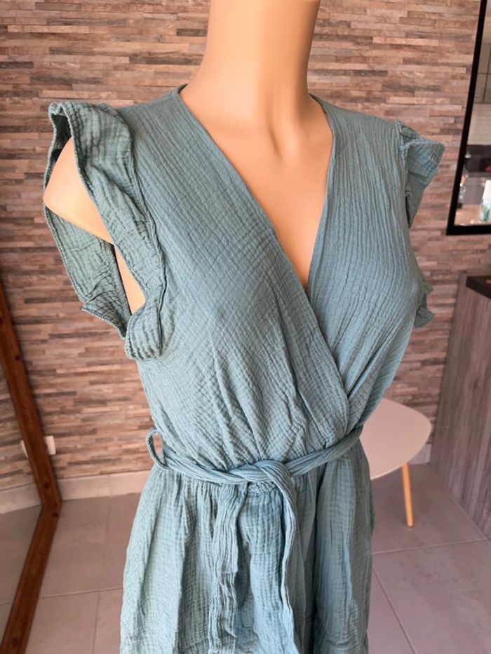 Robe vert d’eau en gaze de coton - photo numéro 3