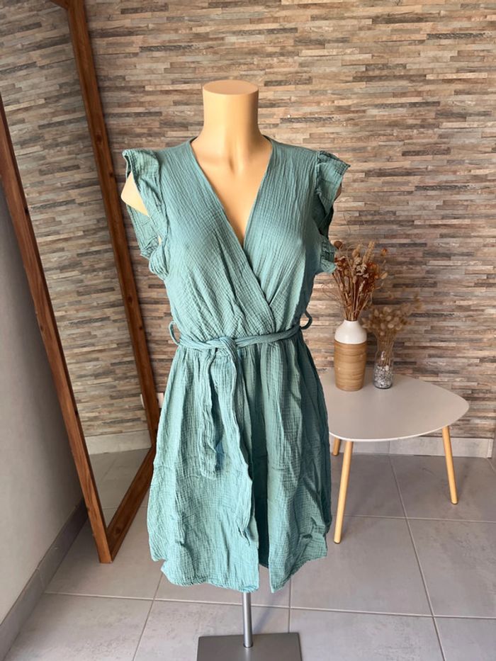 Robe vert d’eau en gaze de coton - photo numéro 1