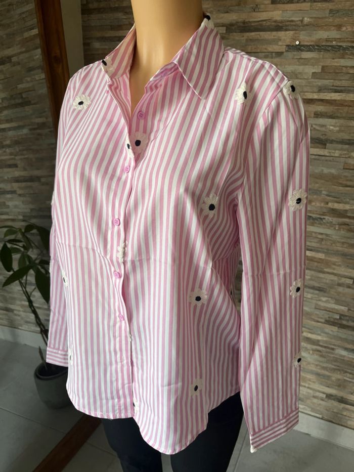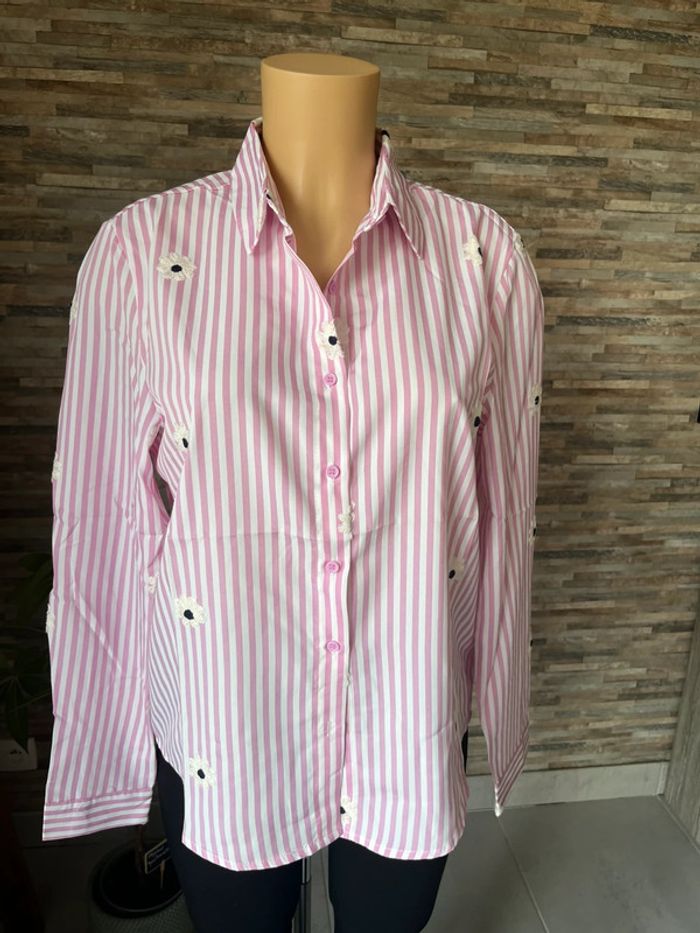 Chemise rose à rayures blanches