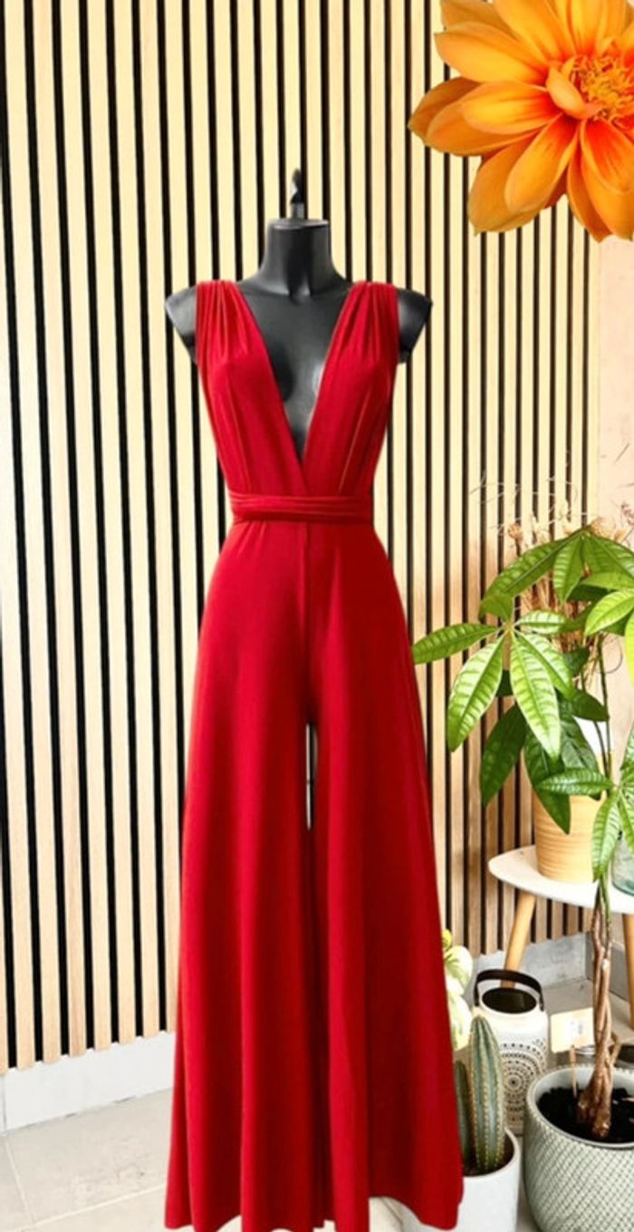 Combi glamour rouge dos nu positions multiples pour soirées