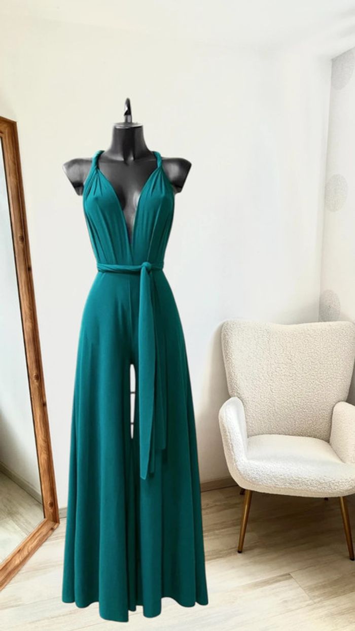 Combinaison pantalon taille unique vert bleu canard dos nu