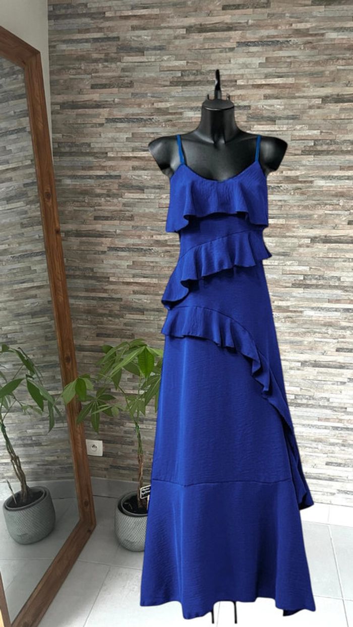 Robe longue d’été bleu roi avec fente