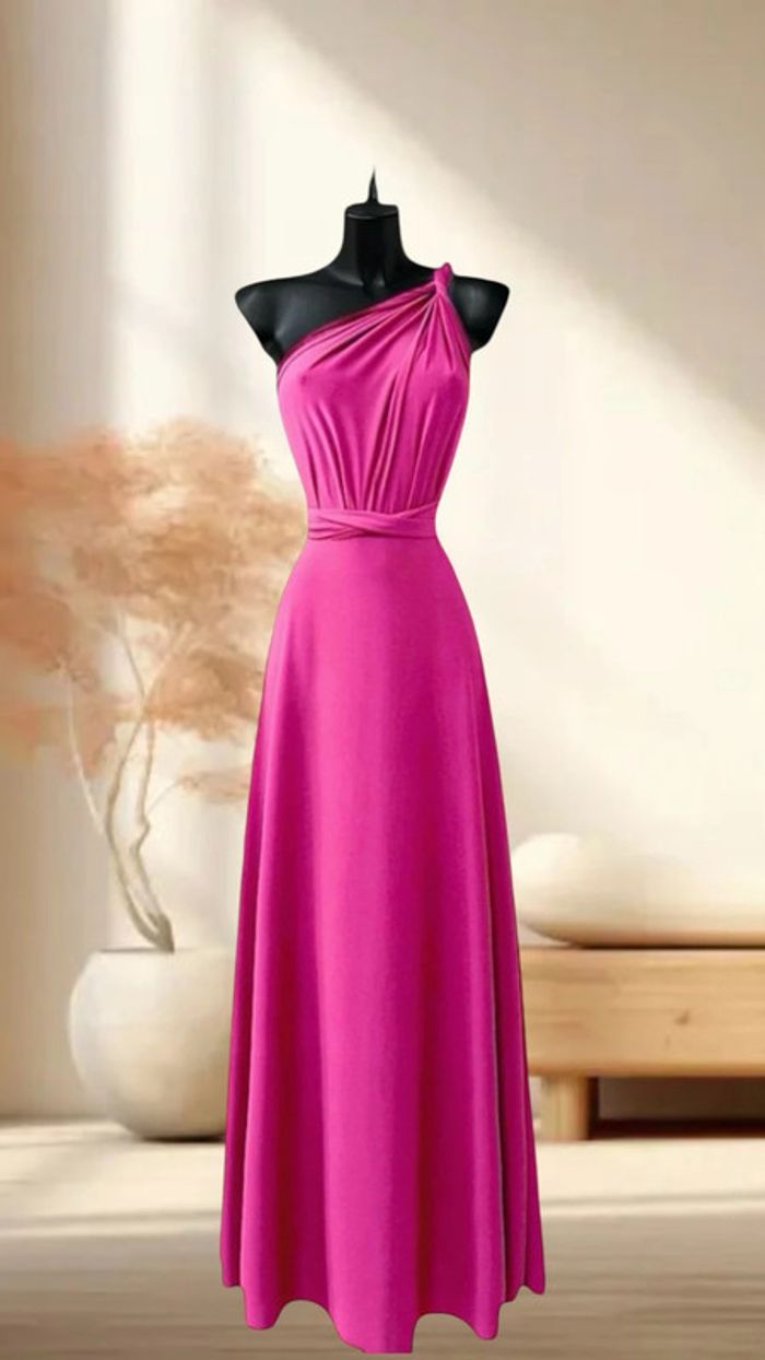 Robe longue rose fuchsia dos nu multiples positions pour l’été
