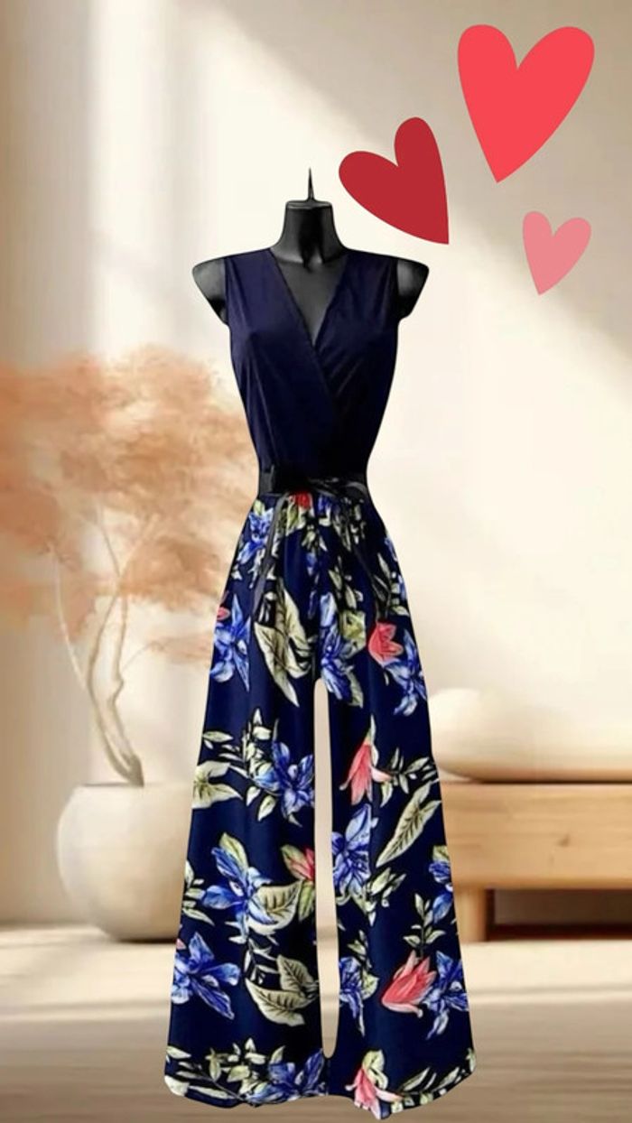 Superbe Combi estivale bleu à fleurs