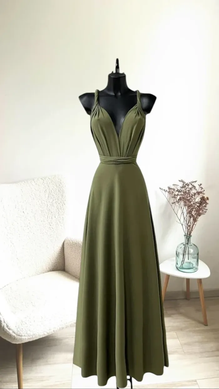 Sublime robe longue kaki dos nu fabrication française