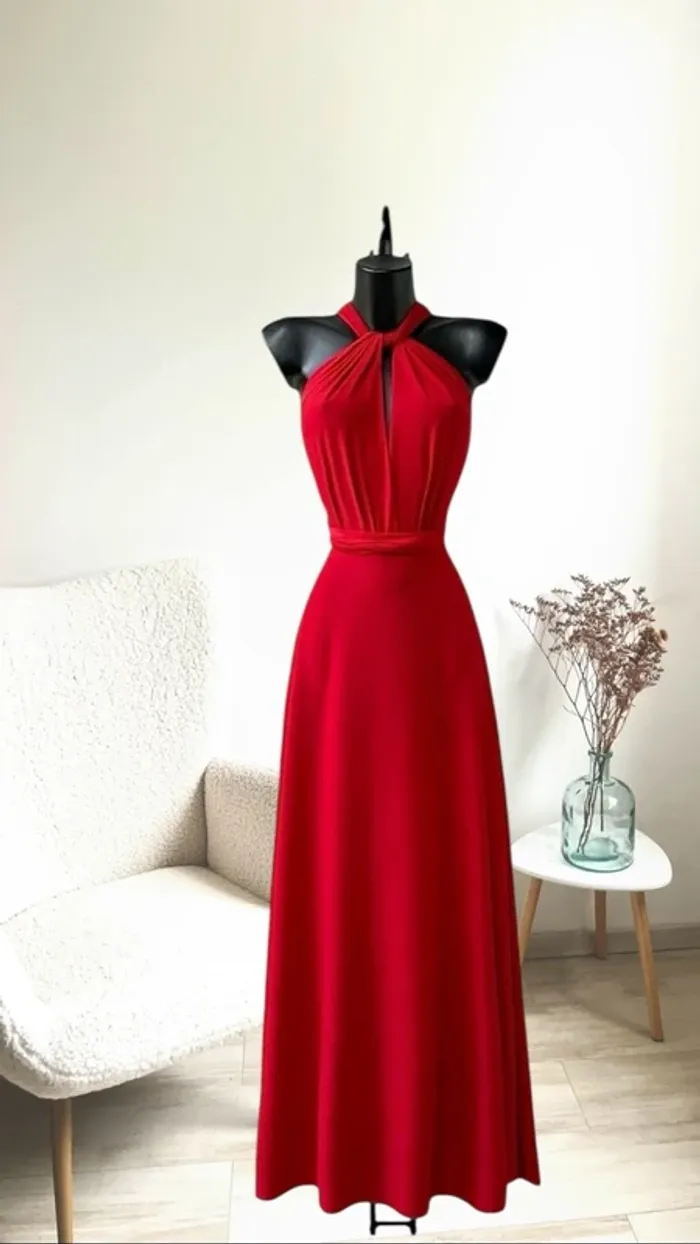 Robe longue rouge glamour dos nu fabriquée en France