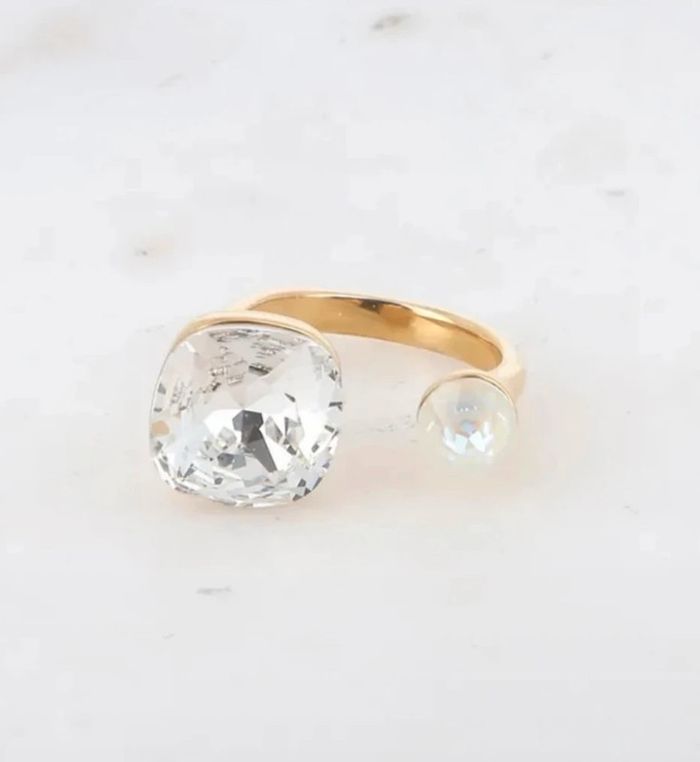 Bague en acier inoxydable ornée de deux cristaux de Swarovski®.