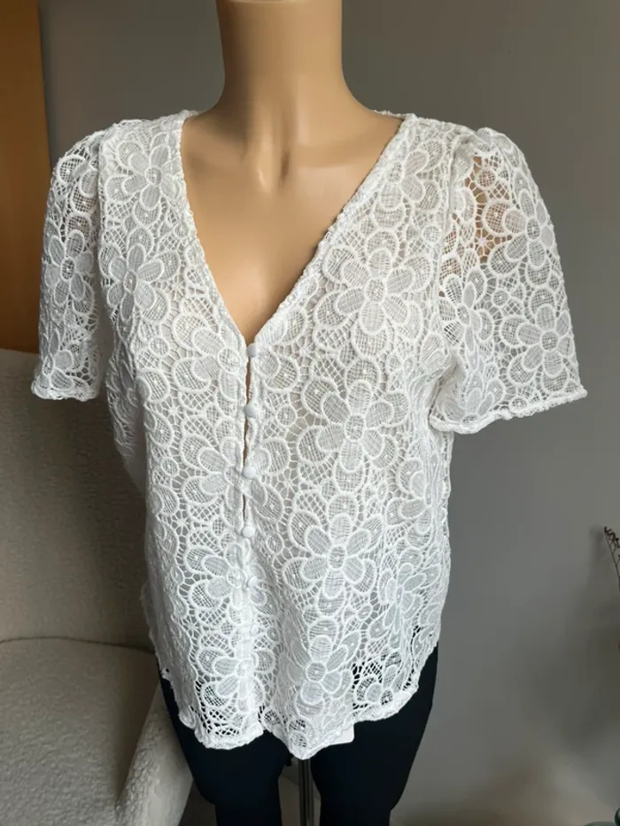 Blouse blanche et dentelle - photo numéro 1