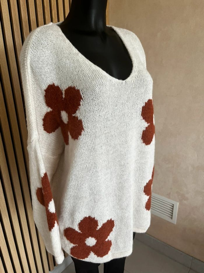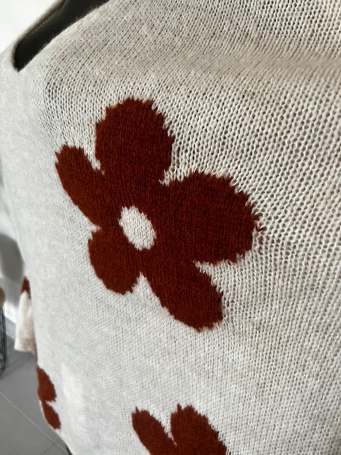 Pull fleurs terracota rouille en laine - photo numéro 5
