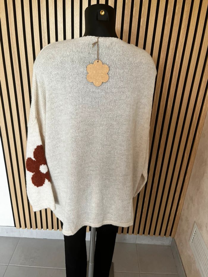 Pull fleurs terracota rouille en laine - photo numéro 4