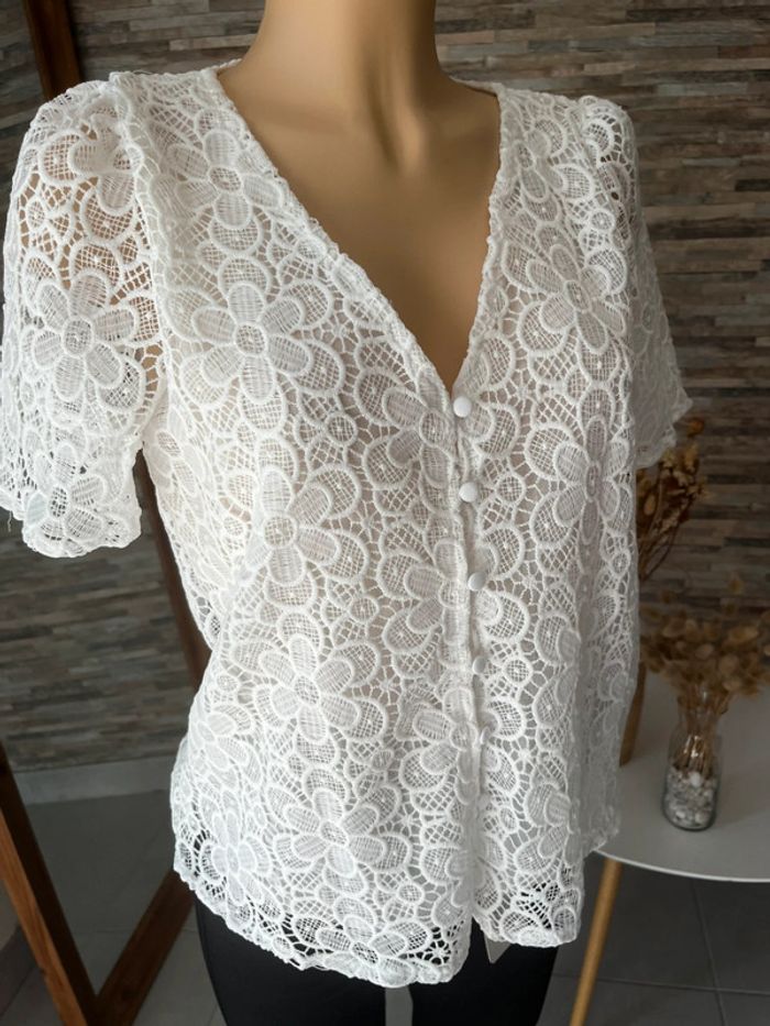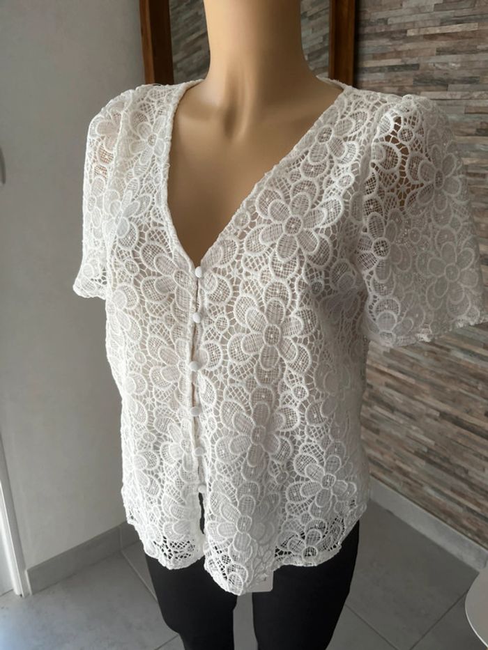 Blouse blanche tendance avec dentelle - photo numéro 1
