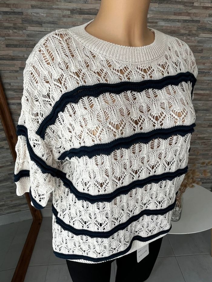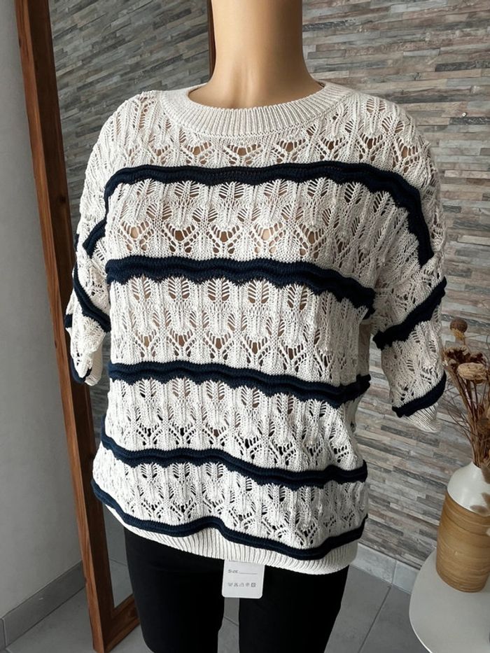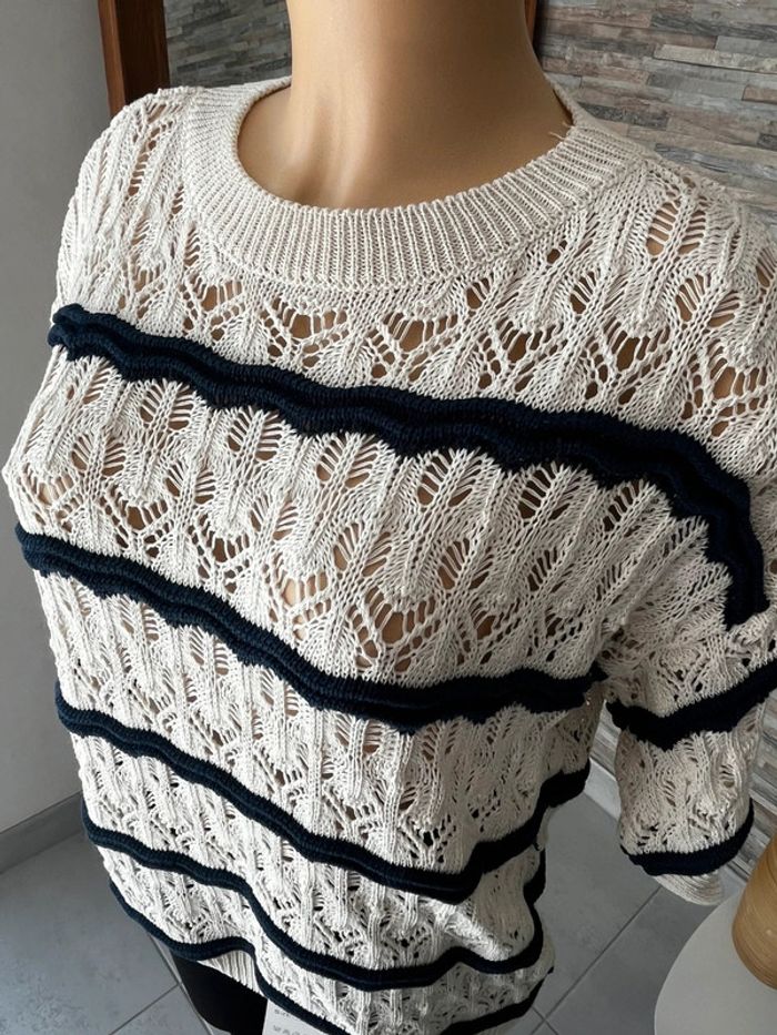 Top crochet écru à rayures bleu marine - photo numéro 1