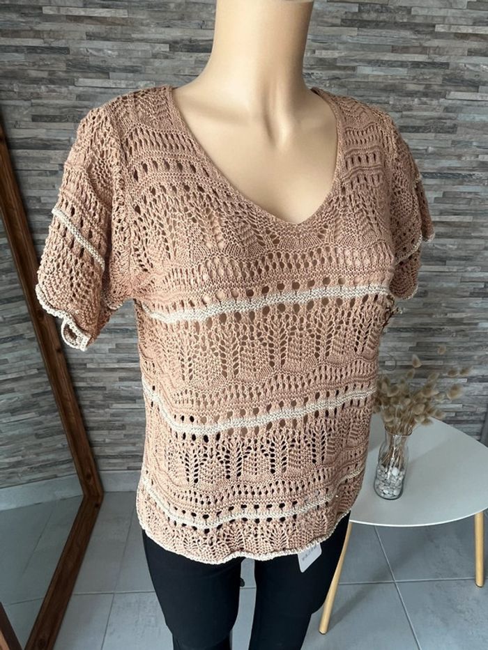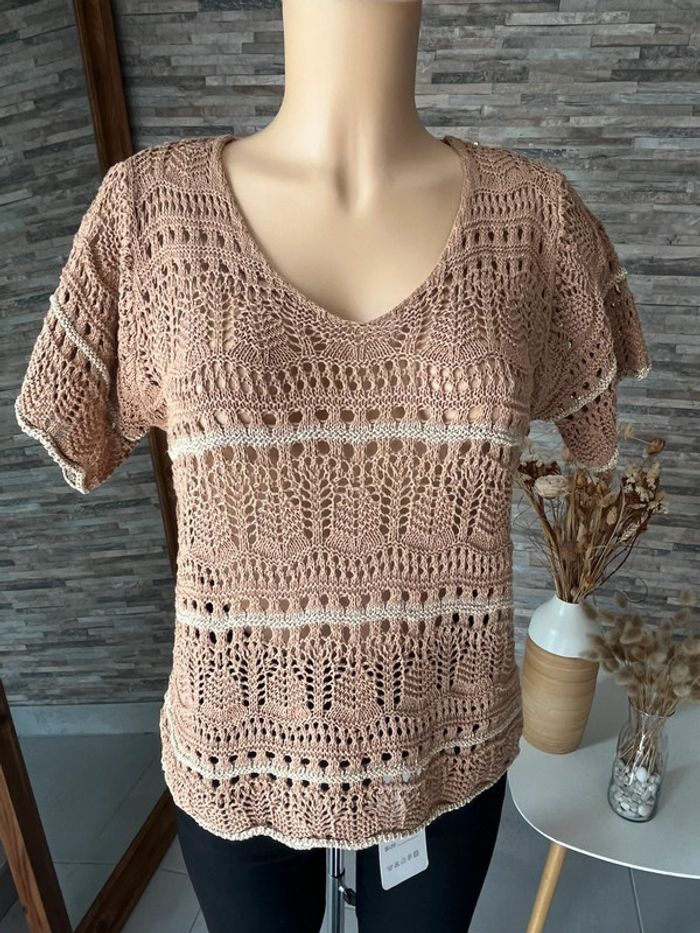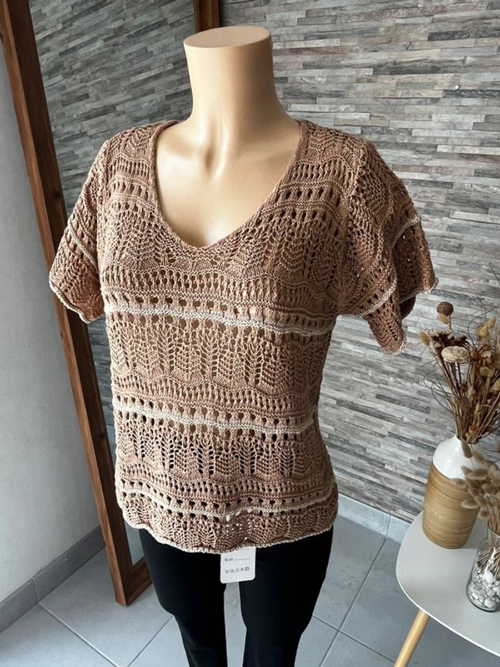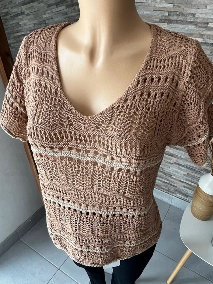 Top en crochet camel et doré - photo numéro 4