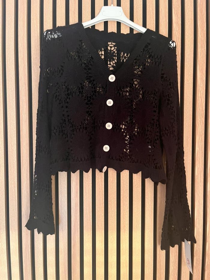 Top court en crochet noir - photo numéro 1