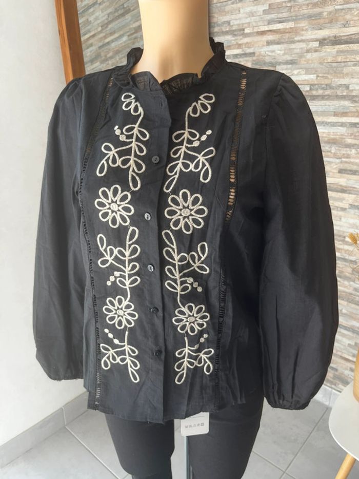 Chemise noire à broderies blanches - photo numéro 1