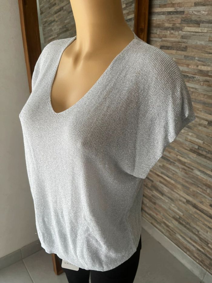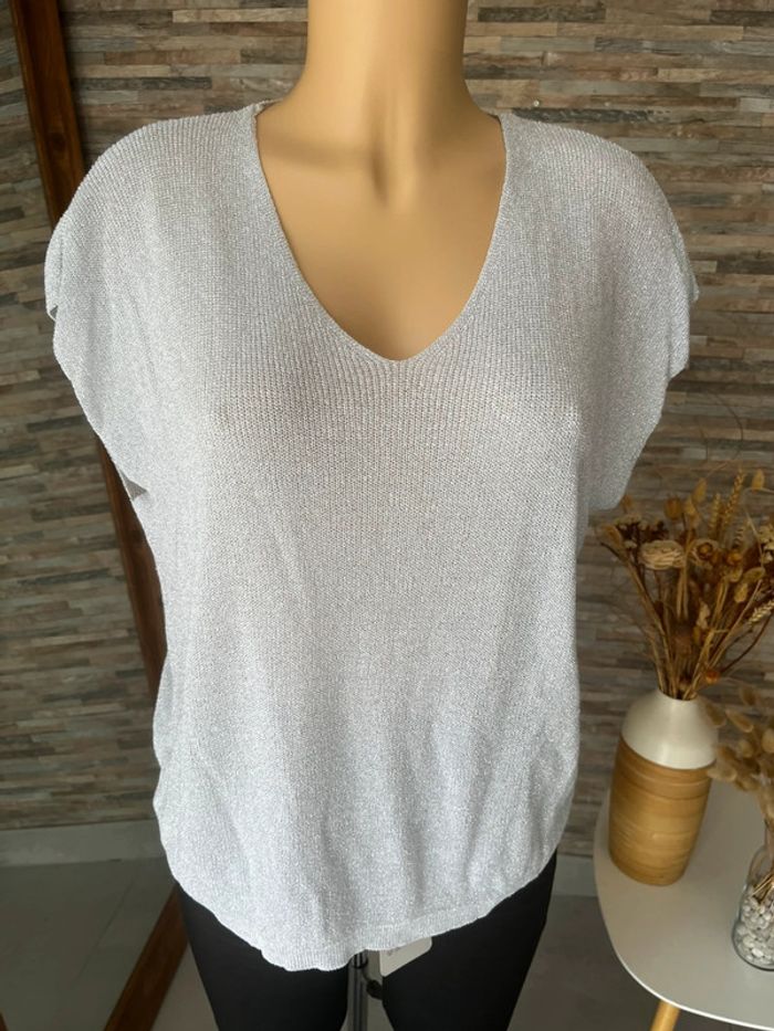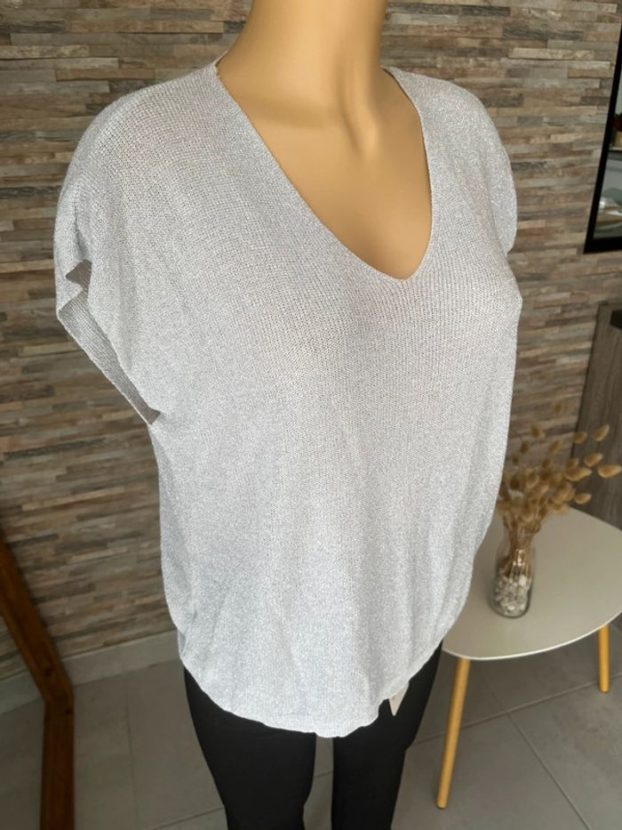 Pull léger en lurex bleu gris tres clair - photo numéro 1