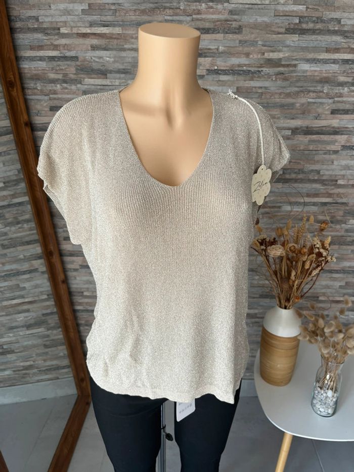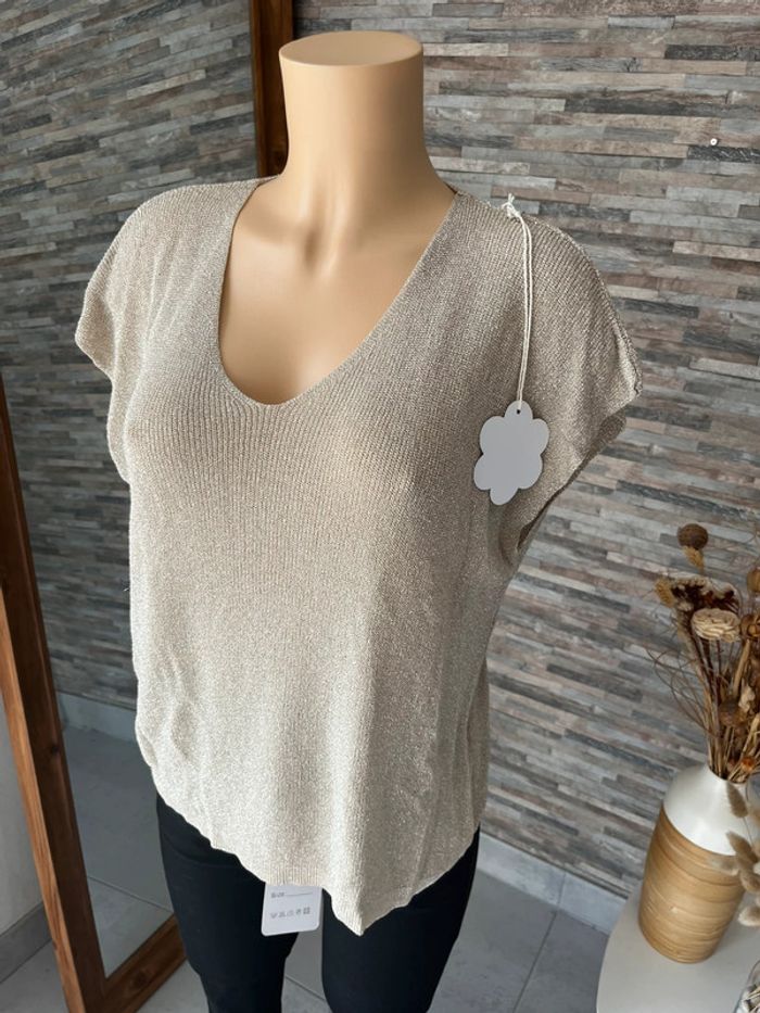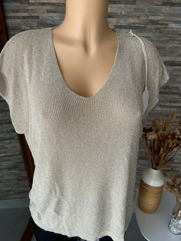 Pull léger en lurex beige - photo numéro 3