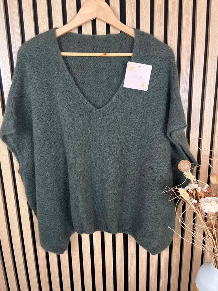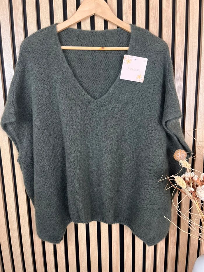 Pull kaki laine et mohair - photo numéro 1