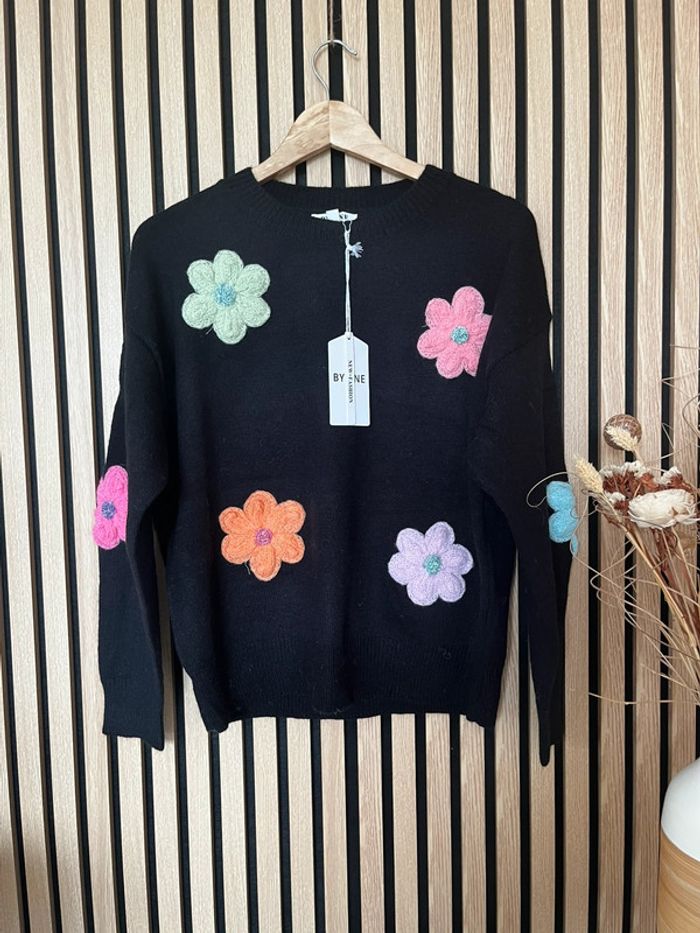Pull noir à fleurs