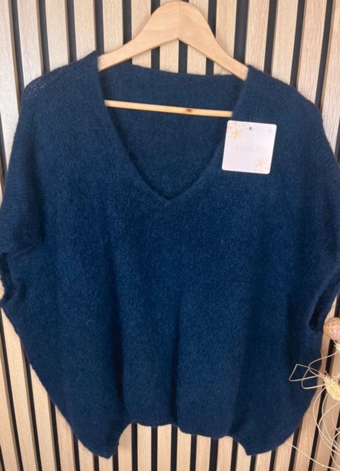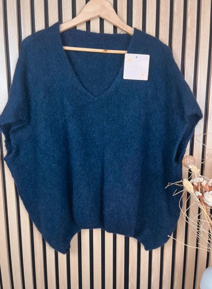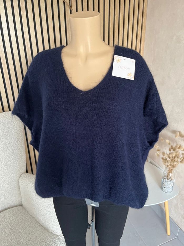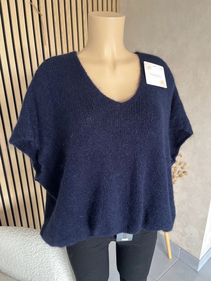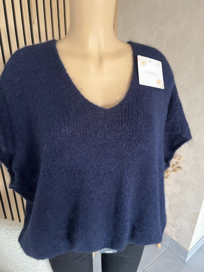 Pull bleu marine sans manche laine et mohair - photo numéro 5