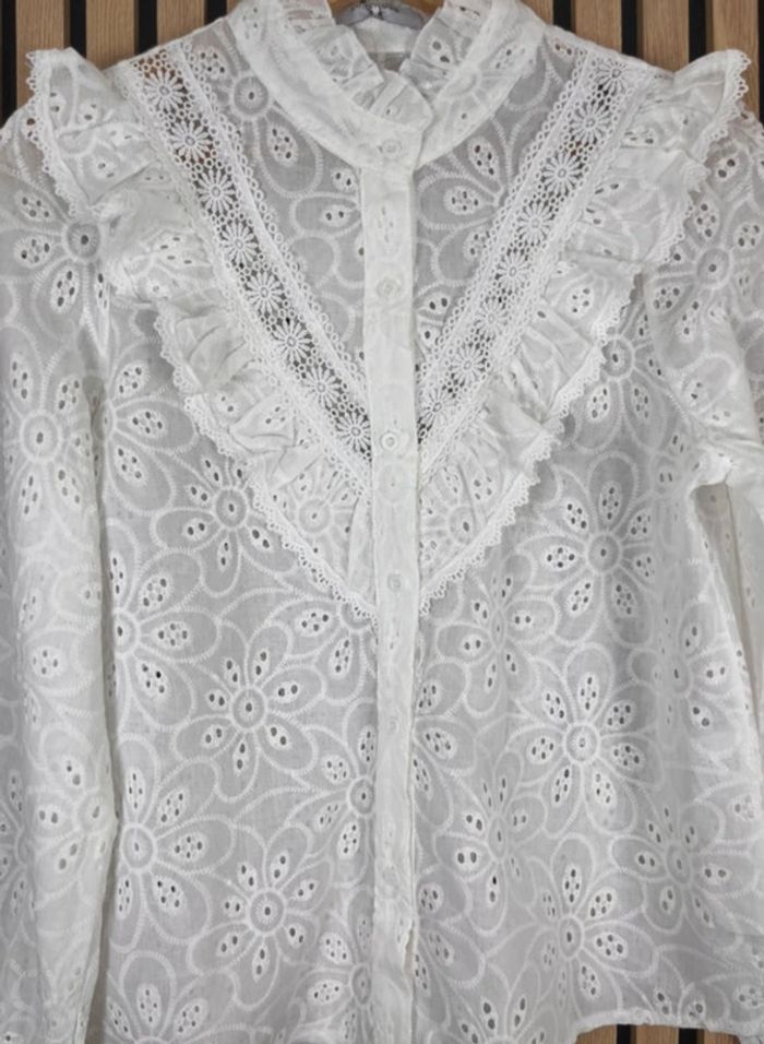 Chemise col Mao broderie anglaise tendance - photo numéro 1
