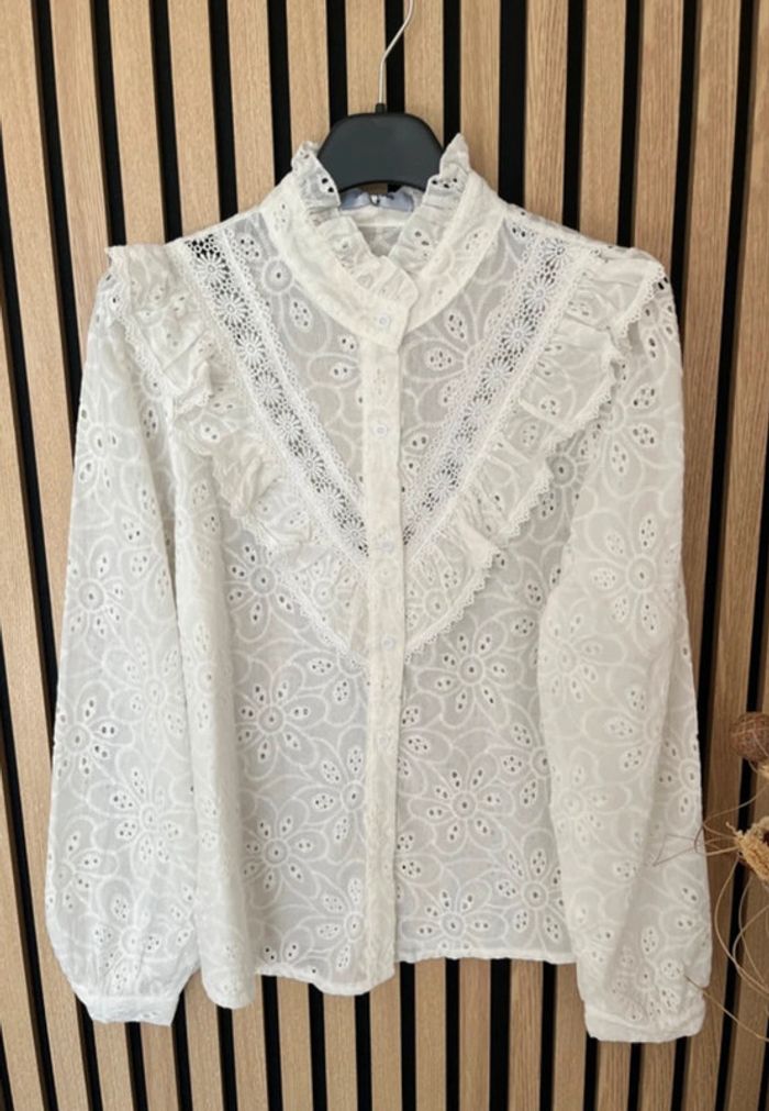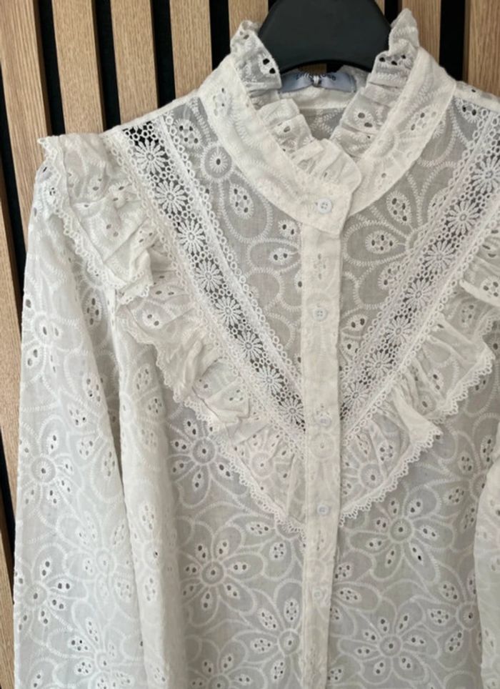 Chemise blanche 100% coton broderie et col mao - photo numéro 1